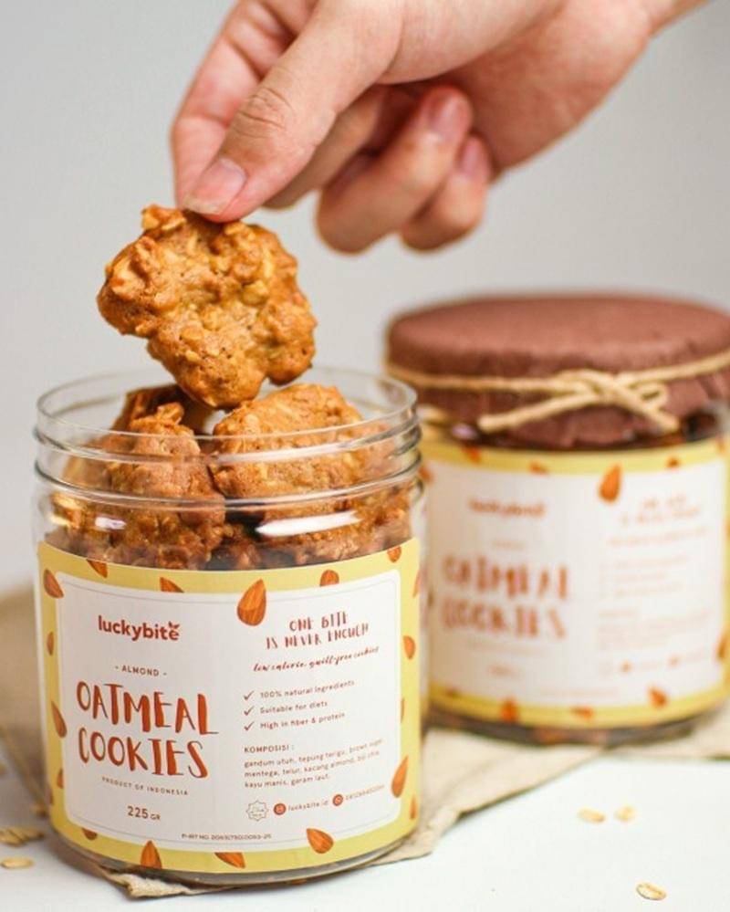Luckybite mengeluarkan kue kering almond oatmeal yang isinya sangat bermanfaat untuk ibu menyusui. Di dalam kue tersebut, terkandung gandum utuh, telur, kacang almond, chia seeds, yang bisa menjadi ASI booster alami.