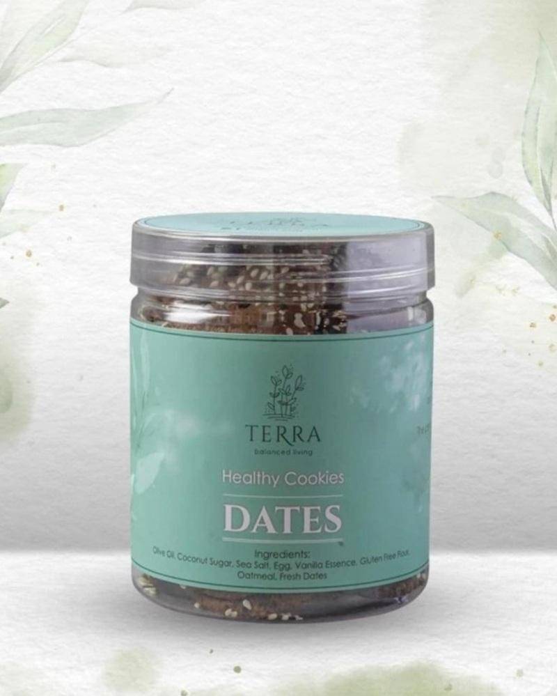 Seperti yang ditawarkan oleh Terra Eats, ada kue kering kurma yang terbuat dari oat, chia seeds, walnut, dan kismis. Terbayang enaknya, ya!