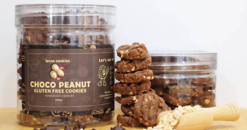 Ada juga kue coklat kacang dari Lacoo Cookies. Kue yang satu ini diklaim sebagai premium gluten free cookies. Semua bahannya bebas tepung terigu dan bebas gula tebu.