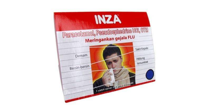 Inza tablet jadi salah satu merek obat pilek yang aman digunakan Ibu menyusui. Di dalamnya mengandung paracetamol, pseudophedrine HCl, dan CTM yang bisa meringankan gejala flu seperti demam, bersin-bersin, sakit kepala, serta hindung tersumbat.