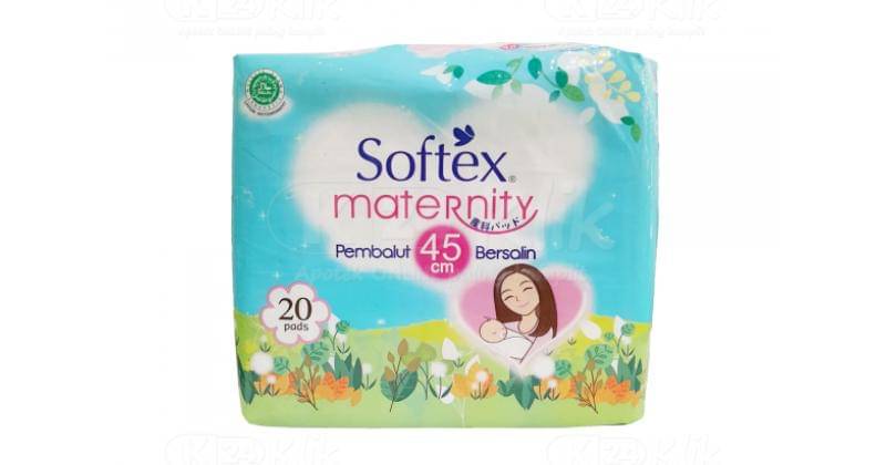 Softex Maternity Pads tersedia dalam dua ukuran kemasan, yakni isi 10 dan 20 pads, dengan panjang pads 45 cm.