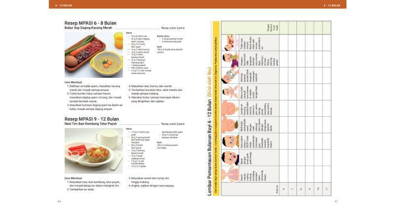 Seperti yang sudah disebutkan di atas, buku KIA ini bisa digunakan sampai si Kecil lahir. Nah, buku ini berisi panduan MPASI yang dijelaskan dengan rinci dan terstruktur, Ma.