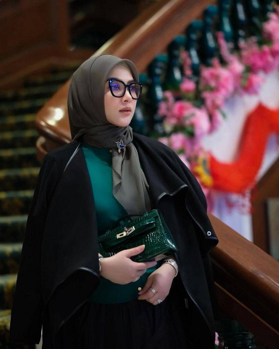 Seperti pada potret yang dibagikan pada 8 Februari 2024 ini. Dalam foto tersebut, Syahrini tampak sedang duduk dalam busana bernuansa hijau dan hitam.