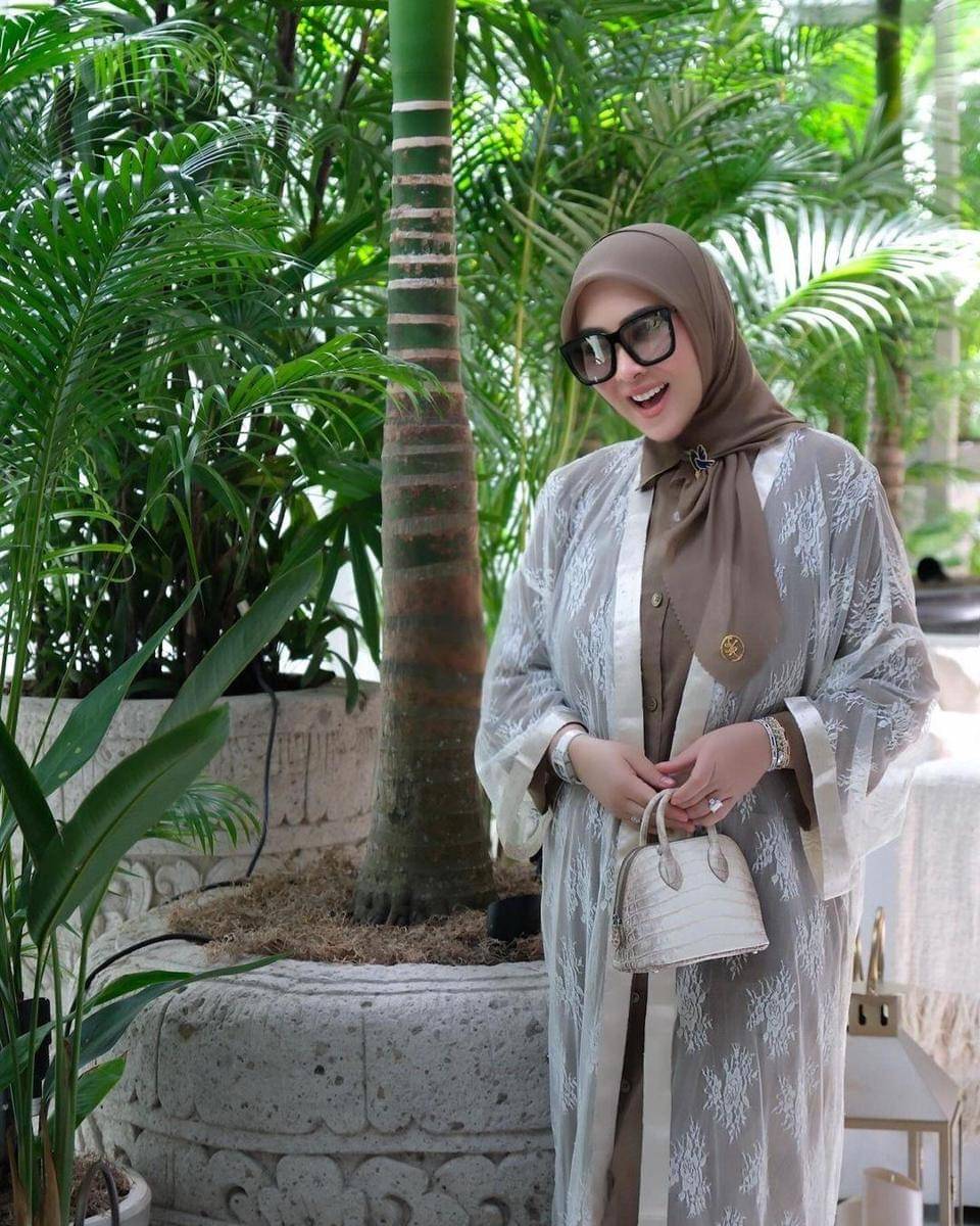 Seperti pada potret yang satu ini, Syahrini terlihat anggun dalam balutan baju berwarna cokelat. Syahrini juga memadukan busananya tersebut dengan outer semi transparan berwarna putih.