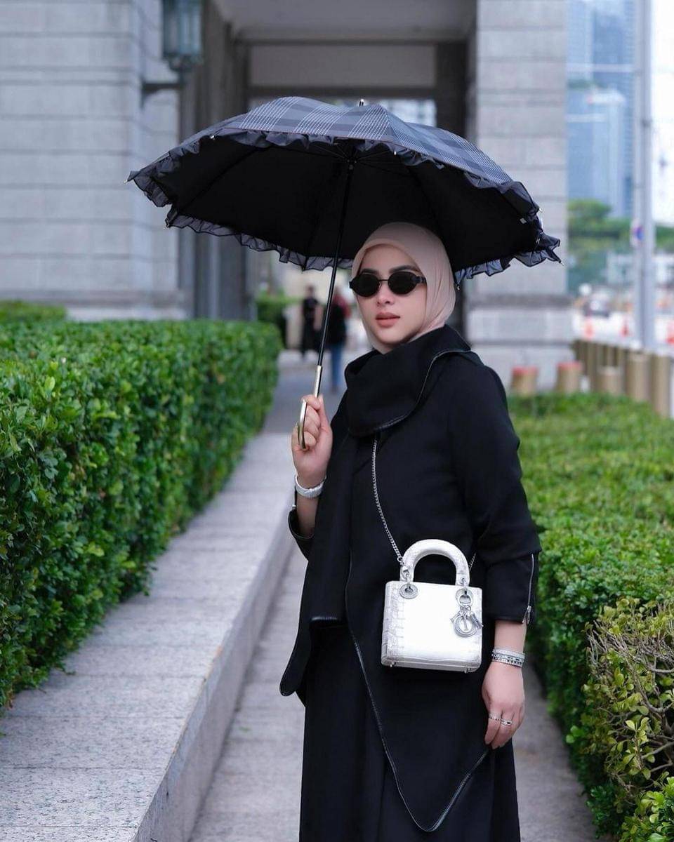 3. Syahrini juga terlihat lebih banyak memakai busana bernuansa gelap