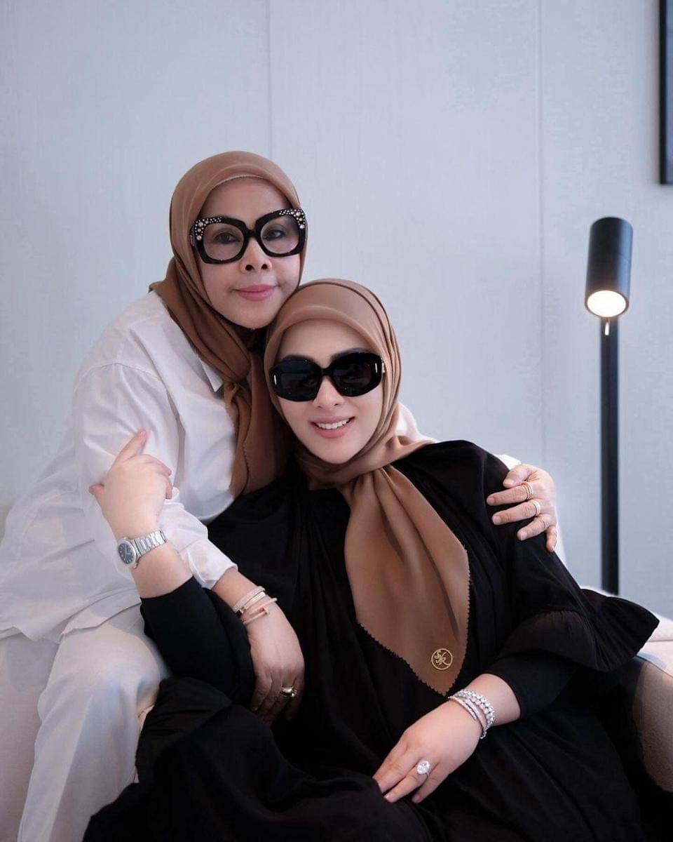 Selain foto bersama sang suami, Syahrini juga foto bersama ibundanya, Wati Nurhayati. Syahrini berpose duduk sambil saling merangkul dengan sang ibunda.