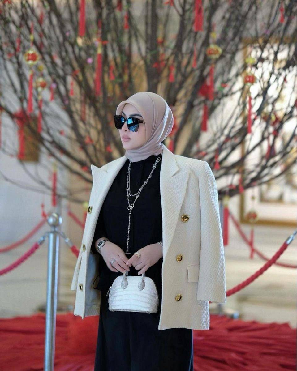 5. Selain busana hitam, Syahrini juga kerap mengenakan outer seperti cardigan, jaket, maupun blazer