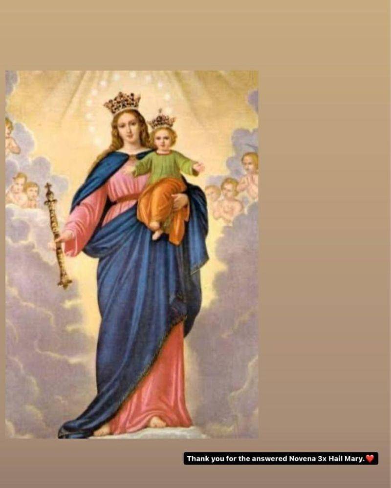 "Thank you for the answered Novena 3x Hail Mary," tulisnya lagi.