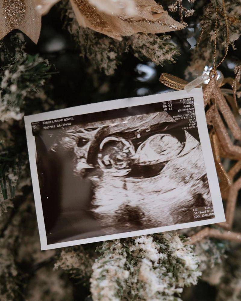 Menariknya, Pamela Bowie mengumumkan kehamilan pertamanya tepat di momen perayaan Natal pada Senin (25/12/2023). Tak hanya mengunggah foto USG, Pamela juga memperlihatkan foto berdua bersama suami dengan pernak-pernik Natal.