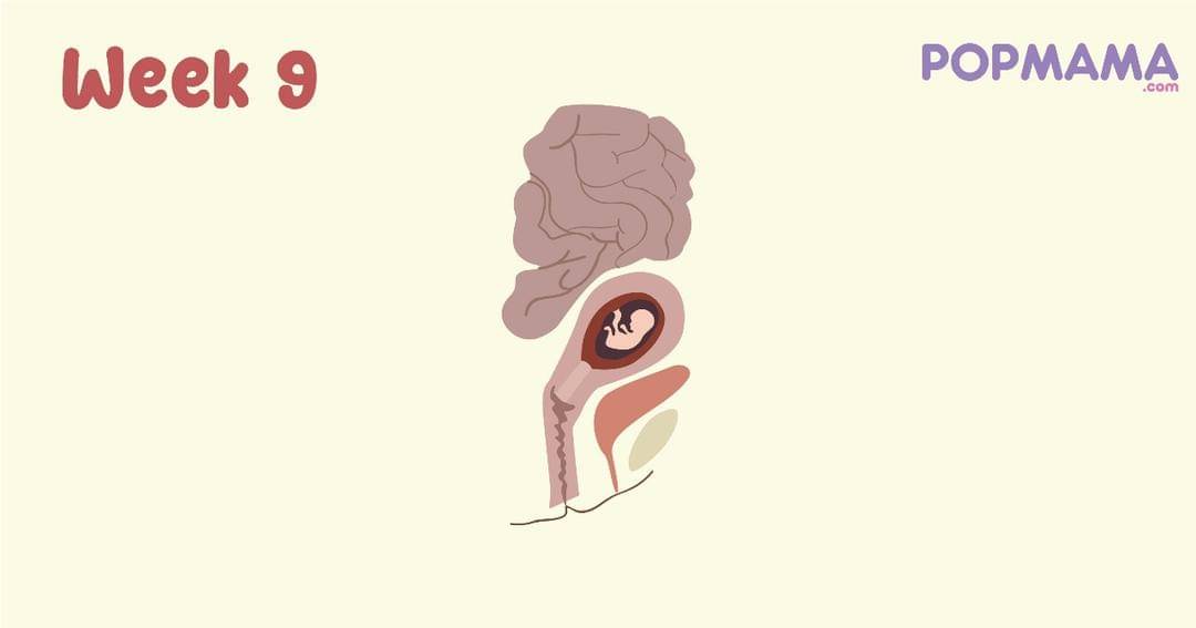 Pada minggu kesembilan, bayi mama telah tumbuh sekitar 2,5 sentimeter. Kepalanya terus tumbuh, dan otot-otot mungilnya mulai terbentuk. Sebentar lagi, bayi mama akan dapat menggerakkan lengan dan kakinya, meskipun Mama masih harus menunggu satu bulan lagi sebelum dapat merasakan tendangan dan pukulan kecil. Walaupum masih terlalu dini untuk merasakan gerakannya, mungkin tidak terlalu dini untuk mendengarkan suara jantungnya.