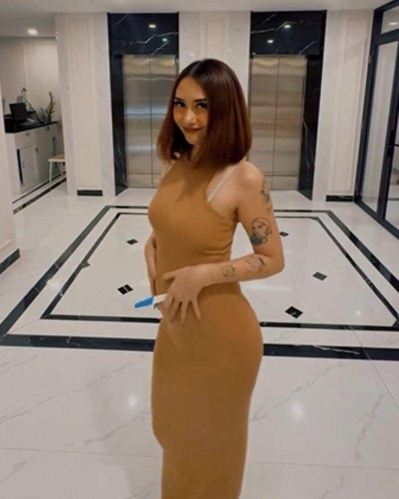 Dalam video tersebut, Beby tampil memesona mengenakan bodycon dress berwarna cokelat yang menonjolkan baby bump-nya yang mulai terlihat jelas.