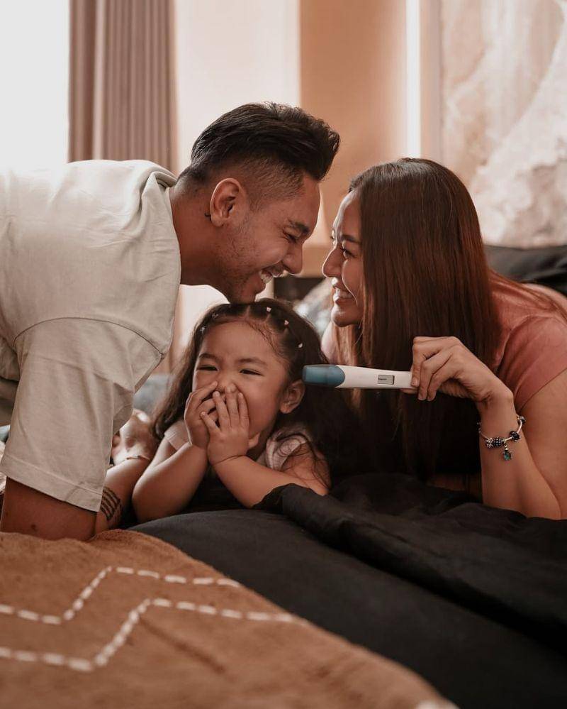 Pada unggahan tersebut, Siti Badriah tampak menunjukkan test pack bertanda positif. Terlihat pula putri pertama mereka, Xarena Zenata Denallie Baharudin yang menunjukkan ekspresi bahagia yang begitu menggemaskan.