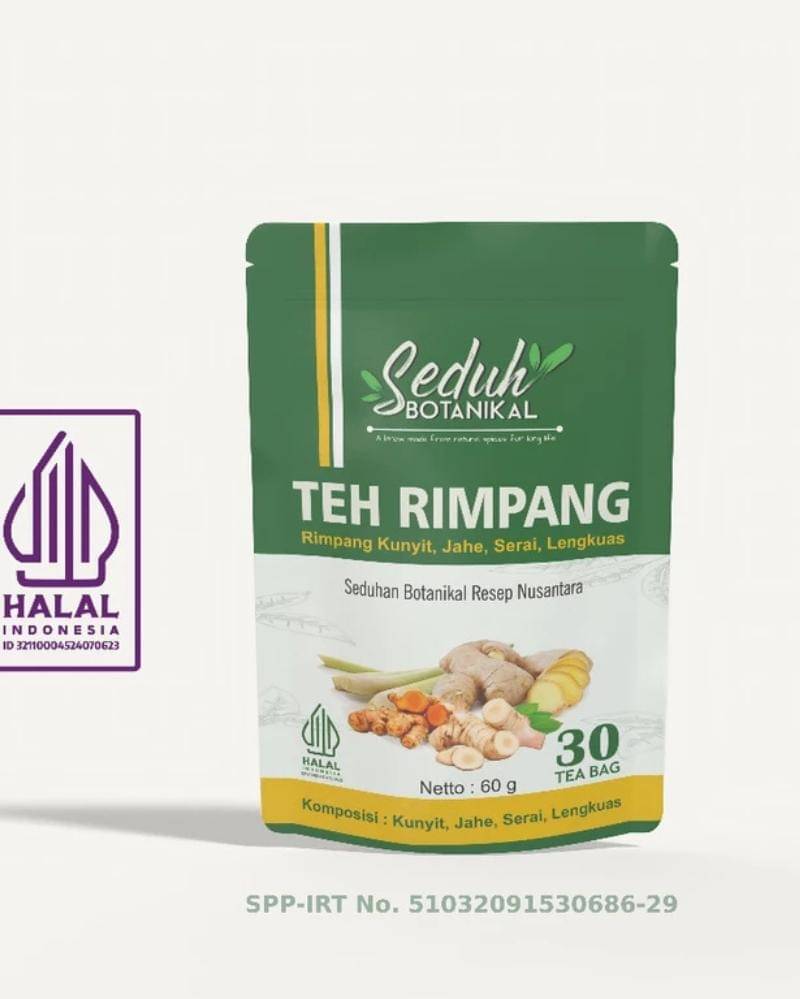 - Seduh Botanikal Teh Rimpang: Teh celup alami dengan bahan-bahan pilihan seperti kunyit, jahe, serai, dan lengkuas organik. Manfaatnya meliputi daya tahan tubuh lebih seimb