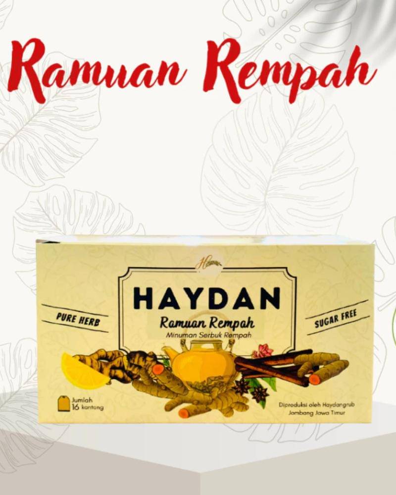 Ramuan Rempah Haydan merupakan teh celup yang dipenuhi dengan berbagai rempah alami, seperti jahe merah, kunyit, lengkuas, serai, dan kayu manis.