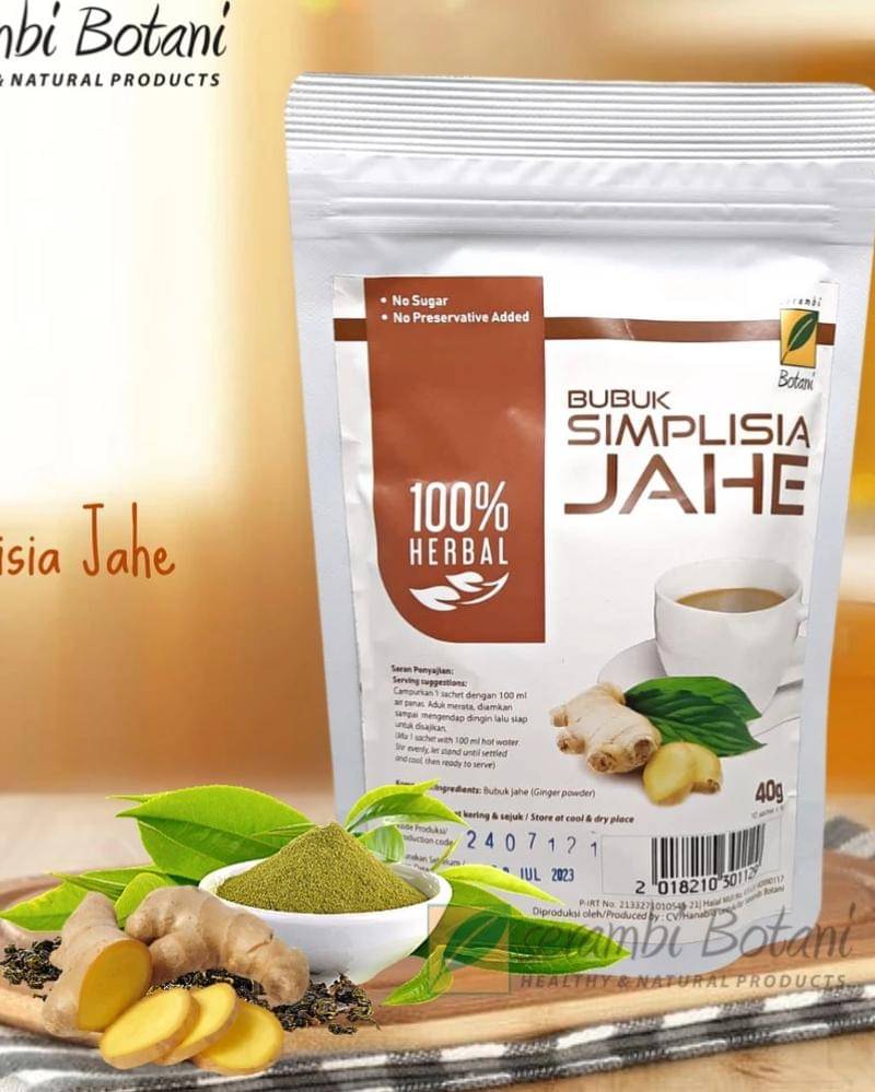 Simplisia merupakan bahan alami yang digunakan sebagai obat dan belum mengalami proses pengolahan, kecuali dinyatakan lain, biasanya berupa bahan yang telah dikeringkan. Simplisia jahe terbuat dari bubuk jahe yang telah dikeringkan.