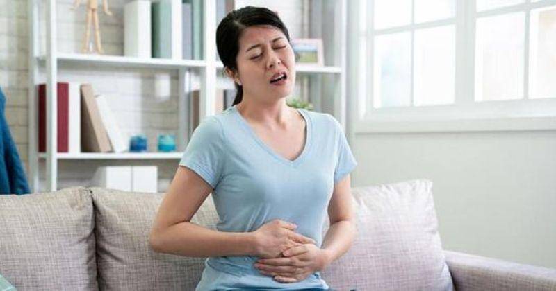 Gejalanya dapat berupa perut terasa penuh, tidak nyaman, dan kembung yang mengingatkan pada gejala pramenstruasi. Selain itu, sering buang angin dapat terjadi.