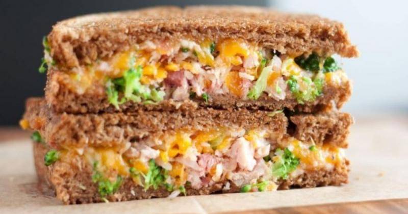 - Jika sudah, tambahkan keju cheddar di atas brokoli, dan tumpuk kembali dengan potongan roti
