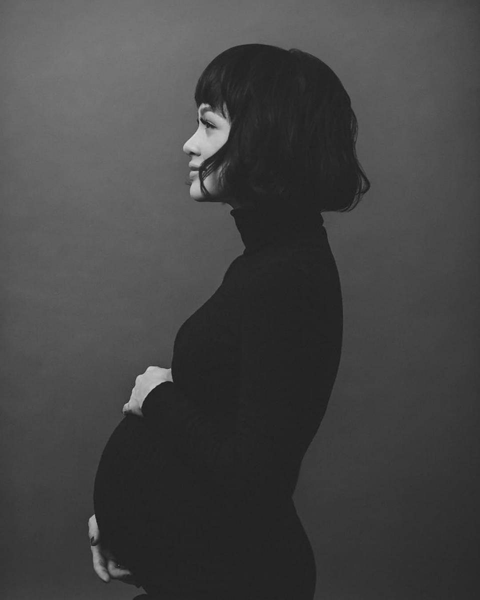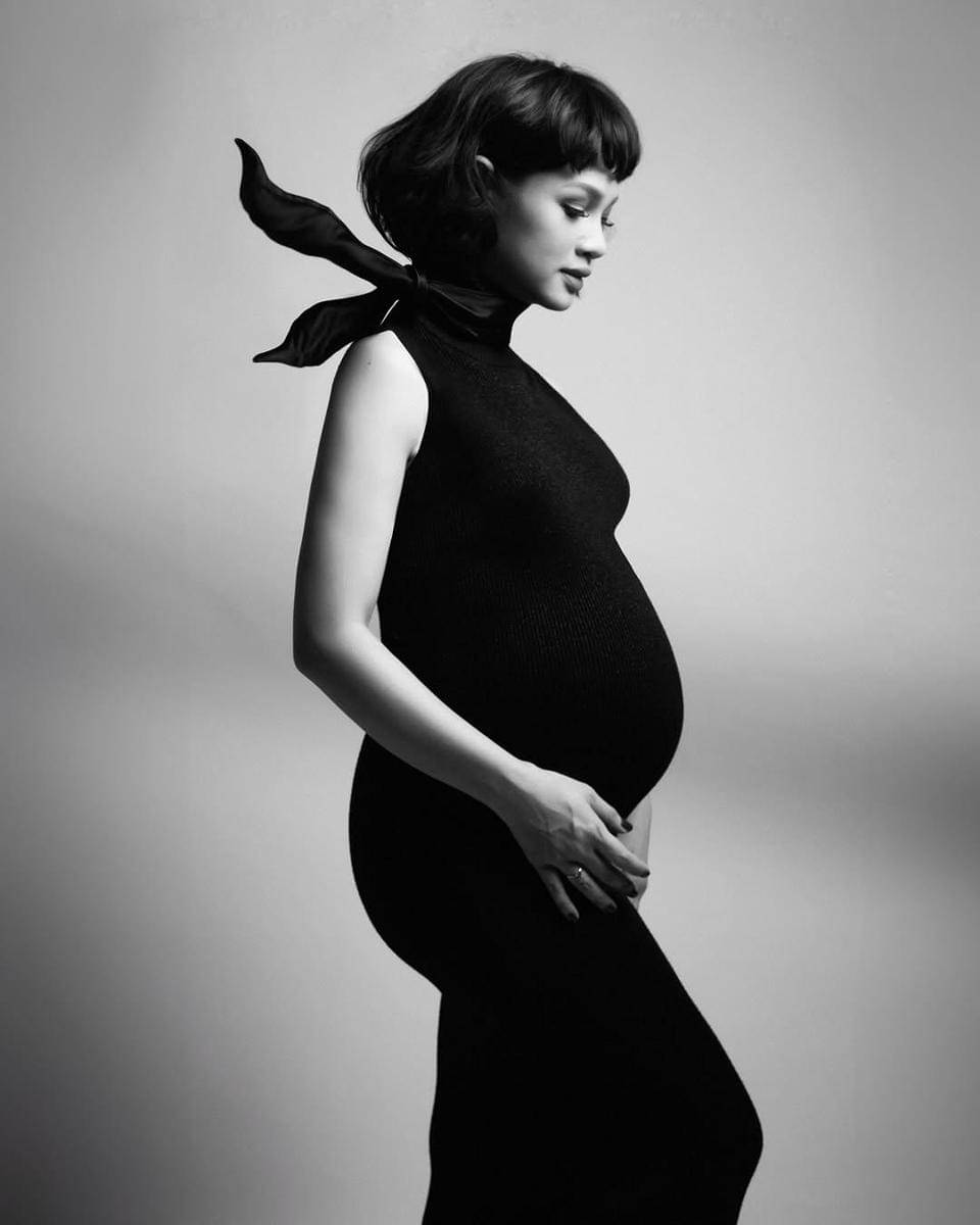 Beralih ke foto berikutnya, kali ini Andien tampil serba hitam di foto maternity-nya. Andien mengenakan bodycon dress berwarna hitam yang semakin memperjelas lekuk tubuhnya.