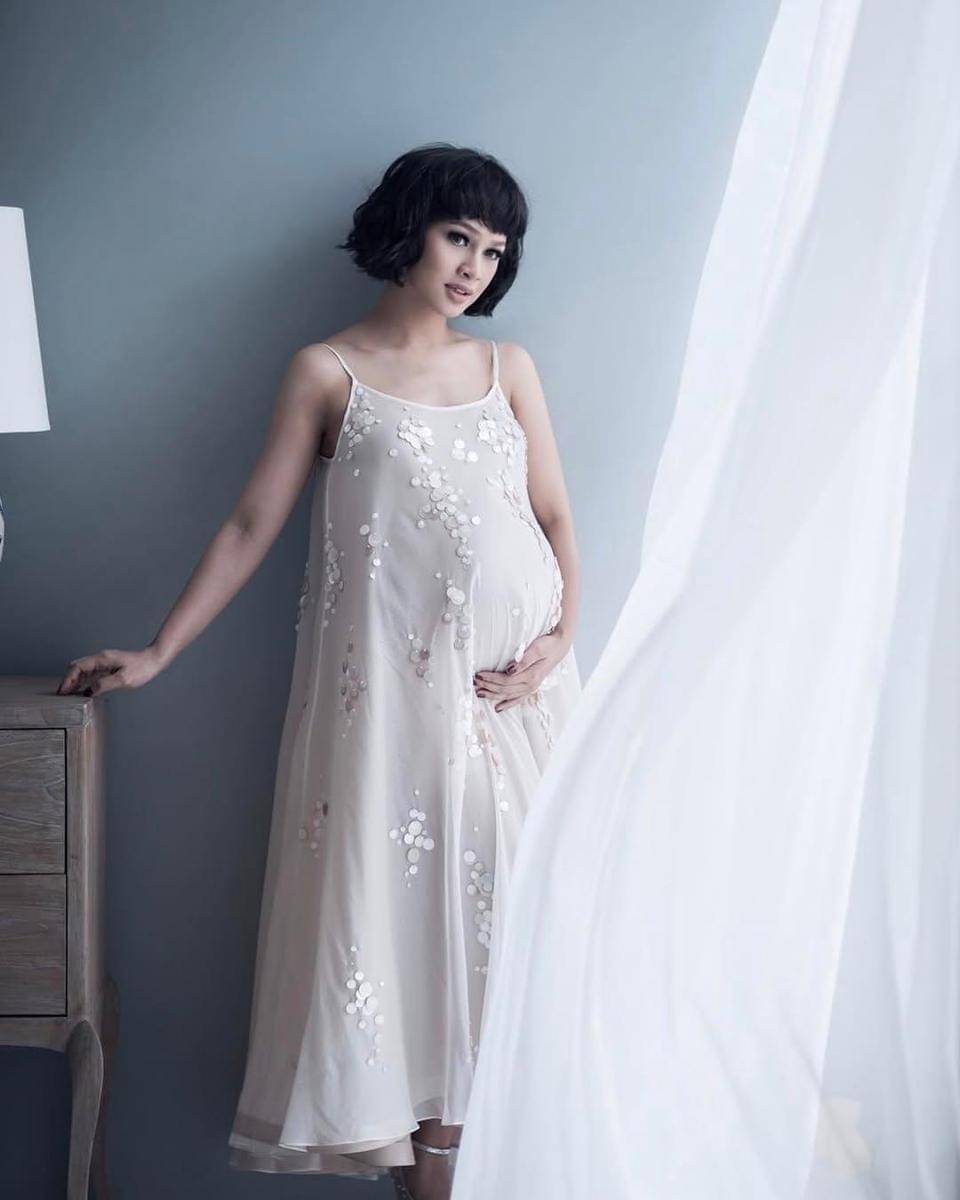 Terlebih lagi, foto maternity Andien ini diambil dari angle samping sehingga baby bump-nya semakin terlihat jelas. Elegan!