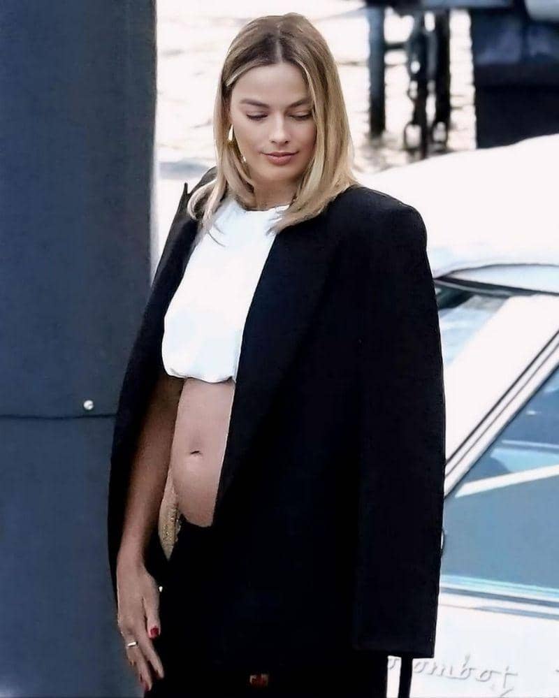 Saat tengah berlibur di Como, Italia, artis Hollywood Margot Robbie tertangkap kamera paparazi memiliki baby bump yang sudah mulai terlihat membesar. Dalam foto tersebut, Margot Robbie tampak mengenakan kaus crop top berwarna putih yang memperlihatkan perutnya yang mulai membuncit.