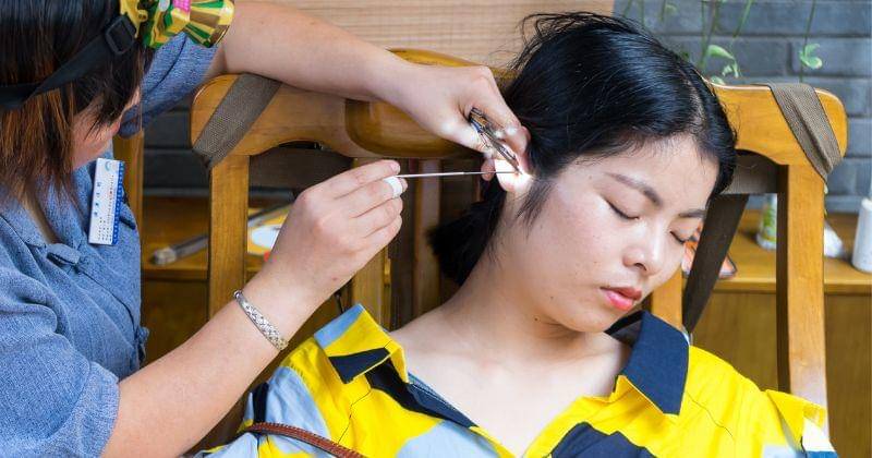 - menggunakan penyedotan lembut untuk membuang kotoran telinga.