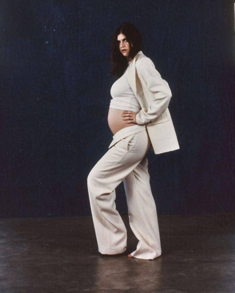 Dalam pemotretan ini, Daddario tampil stunning dengan outfit serba putih. Aktris asal Amerika ini juga membuka kancing celananya untuk memperlihatkan baby bump miliknya.