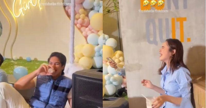 Terlihat pada sebuah unggahan, El begitu bersemangat saat turut serta dalam sebuah permainan yang dipandu oleh pembawa acara. Melihat pacarnya yang begitu bersemangat menghabiskan susu di dalam botol, Syifa pun tak tahan untuk menertawakannya.