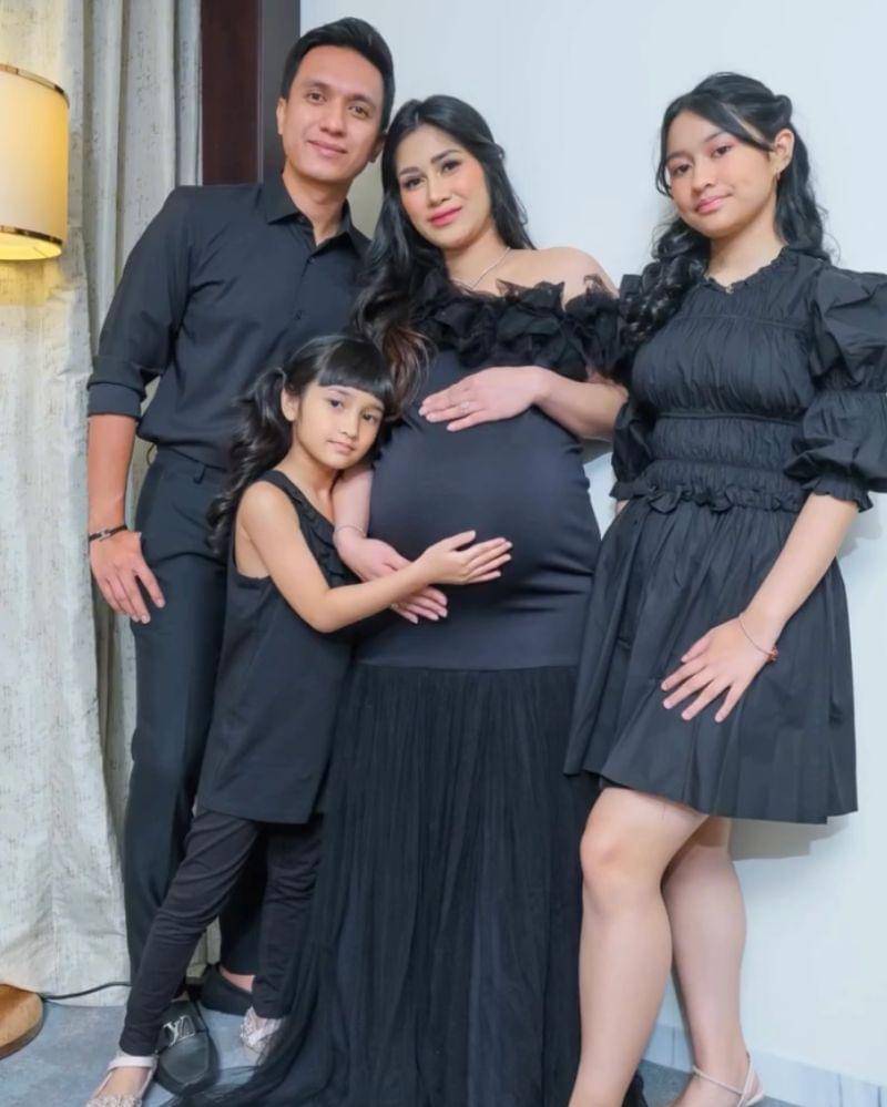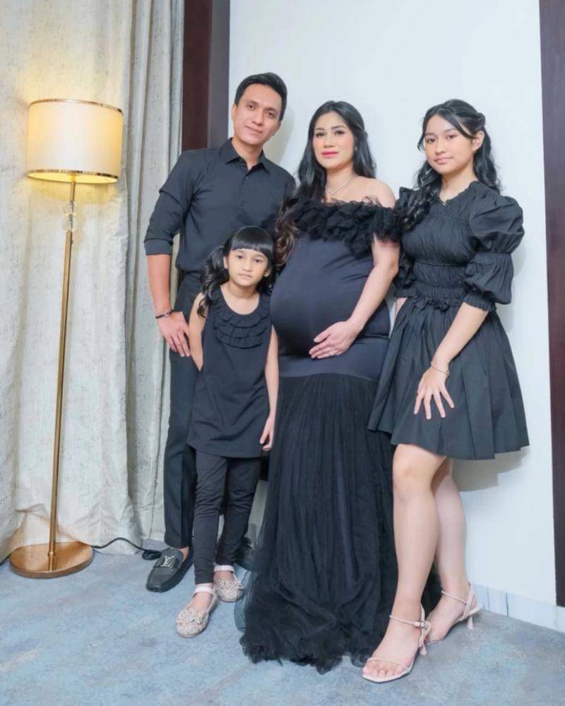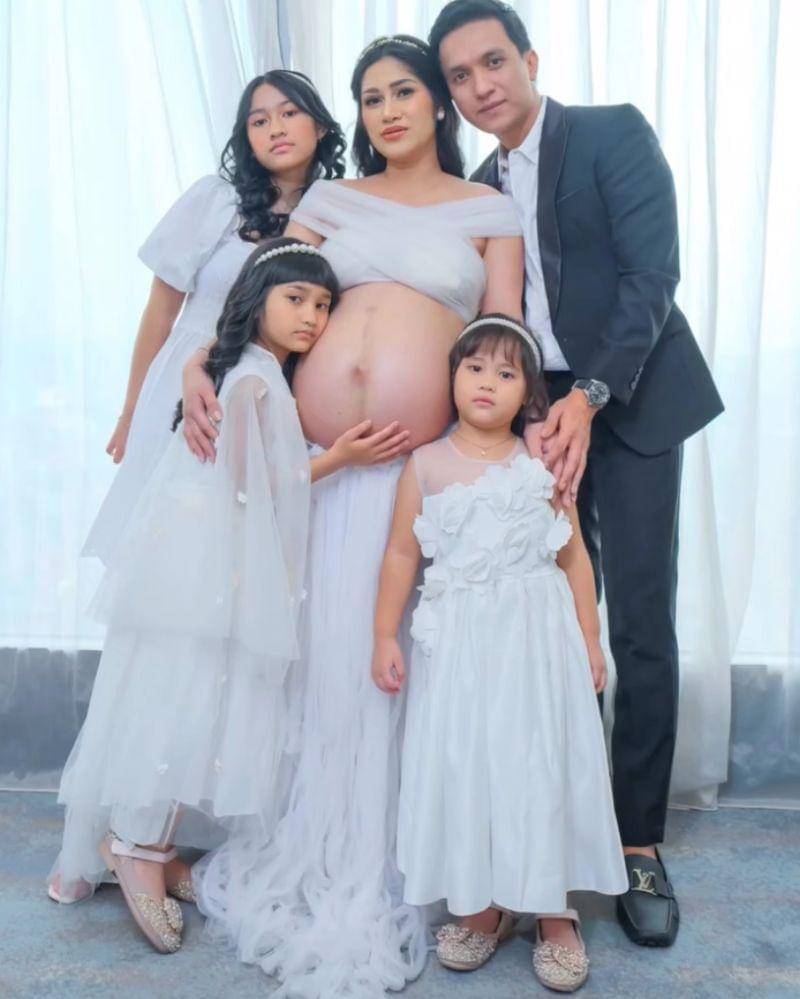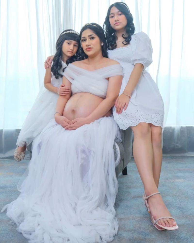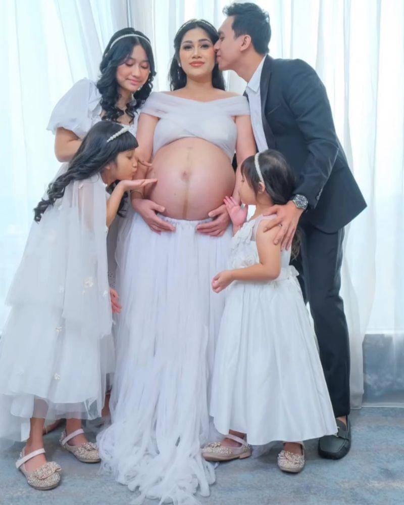 Mereka semua pun berfoto dengan senyum bahagia. Bahkan, Syasya dan Vanessa berpose mencium baby bump sang mama seolah menunjukkan kasih sayang kepada adik yang masih berada di dalam kandungan.