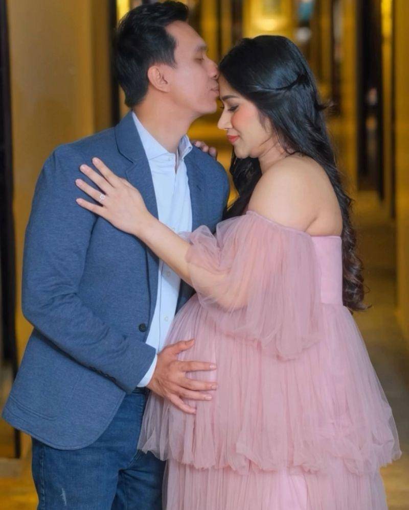 Icha Annisa sendiri tampil menawan dalam balutan dress berwarna pink. Sementara itu, Olva Zengga yang mengenakan setelan jas tampak memegang baby bump sang istri sambil memberikan kecupan di dahi.