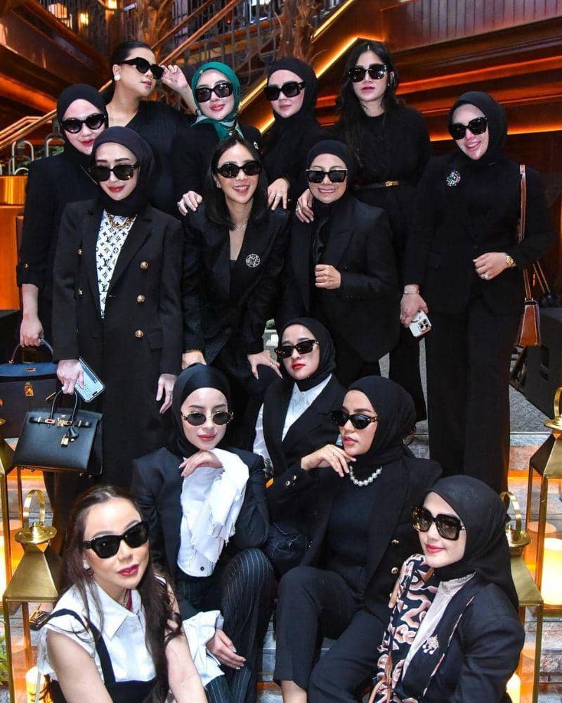 Terlihat Icha dan beberapa orang lainnya kompak mengenakan outfit berwarna gelap.