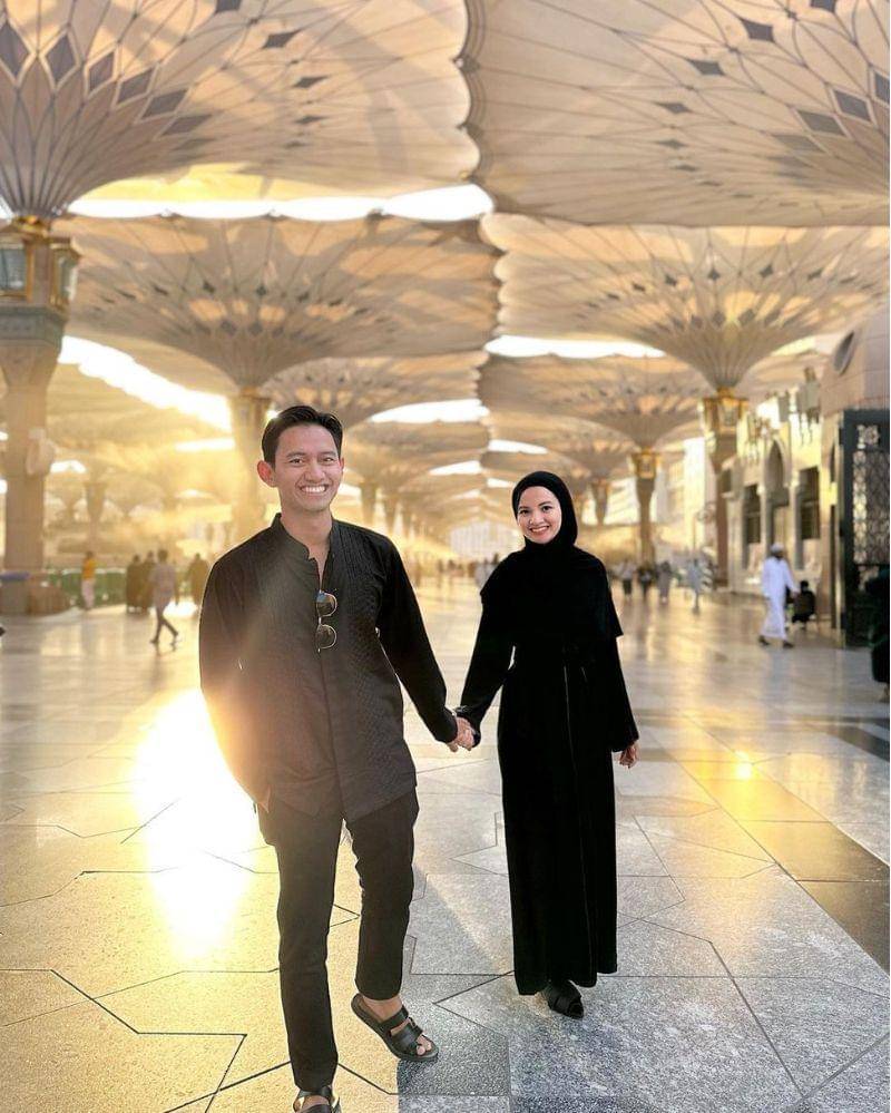 Saat tiba di tanah suci, tak lupa Sabrina dan Belva Devara mengabadikan momen bahagia mereka. Keduanya tampak berpose di Masjid Nabawi, Madinah dengan pakaian serba hitam.