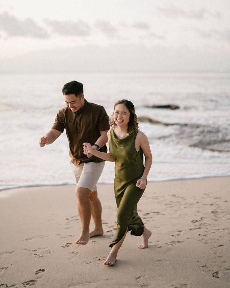 Karena berada di Bali, pantai pun menjadi lokasi pemotretan yang Ite dan Arif pilih. Tampil simpel namun tetap elegan saat pemotretan, rupanya pasangan ini kembali menjadi sorotan karena ide foto yang mereka lakukan.