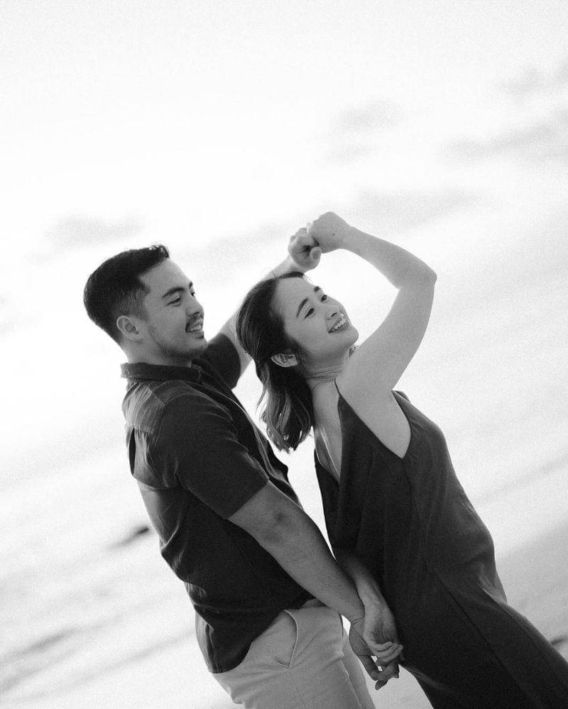 Terakhir, potret yang dibagikan Gritte kepada publik juga menunjukkan ekspresi bahagia keduanya ketika berdansa di pinggir pantai. Terlihat Gritte dan Arif dipenuhi dengan kebahagiaan karena sebentar lagi keduanya akan menjadi orangtua baru.