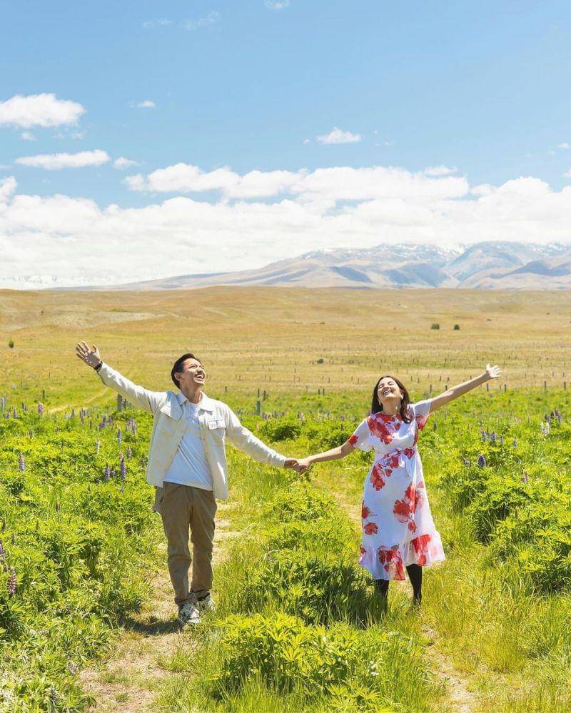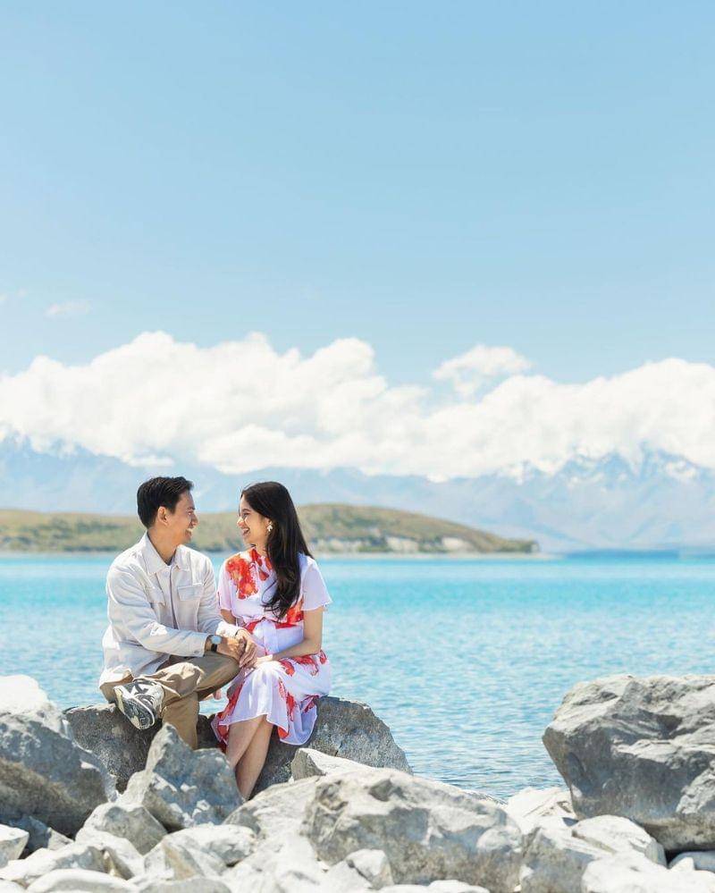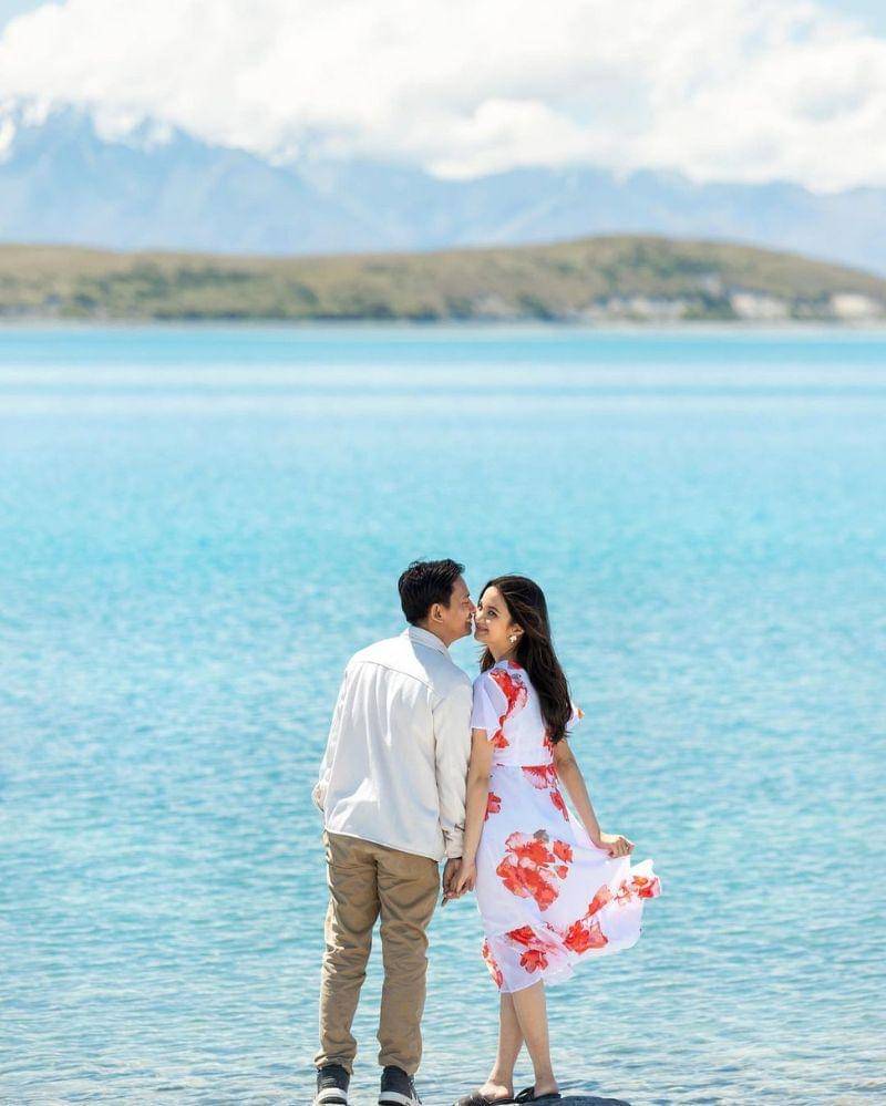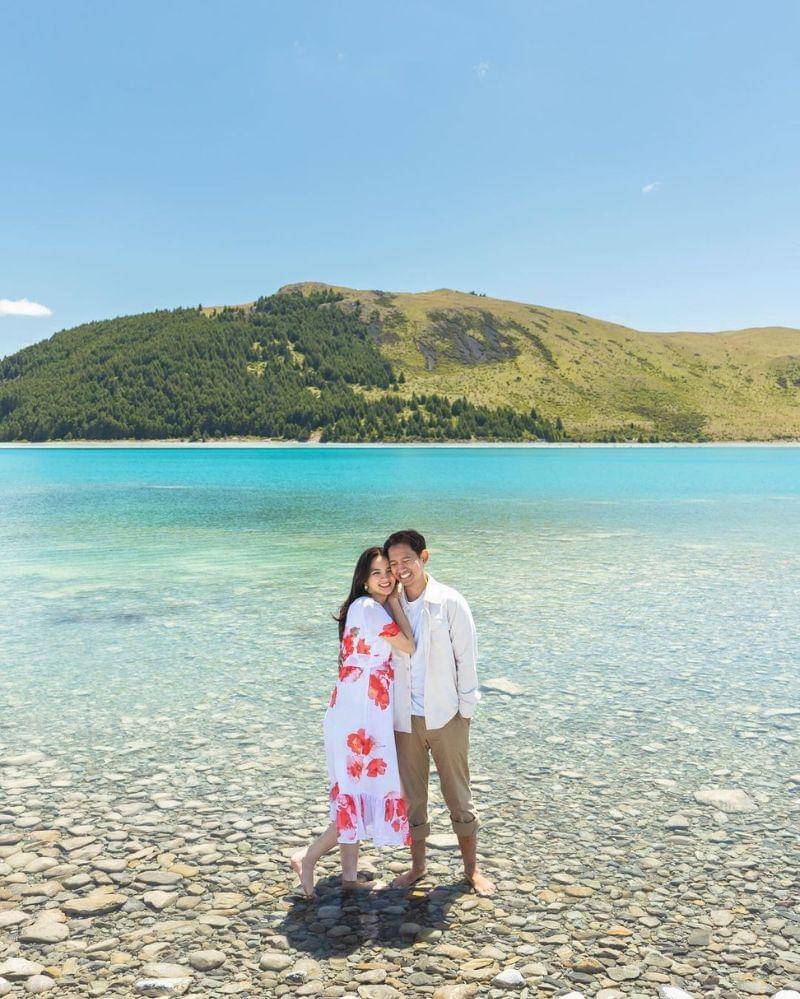 Salah satu destinasi yang dikunjungi pasangan ini adalah Danau Tekapo. Danau ini termasuk dalam destinasi wisata romantis di New Zealand, lho.