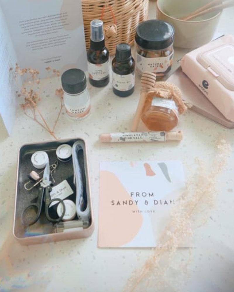 Dian memabagikan hampers berisikan perlengkapan alat jahit, mulai dari meteran, peniti, jarum, gunting, kancing hingga benang. Hampers yang menggemaskan tersebut diberikan kepada kerabat terdekatnya dan sang Suami.