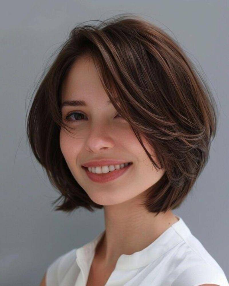 Kalau Mama punya rambut tipis dan ingin tampil lebih stylish, bob layer adalah pilihan yang wajib dicoba. Potongan ini menambahkan dimensi dan volume, sehingga rambut mama terlihat lebih tebal dan penuh.