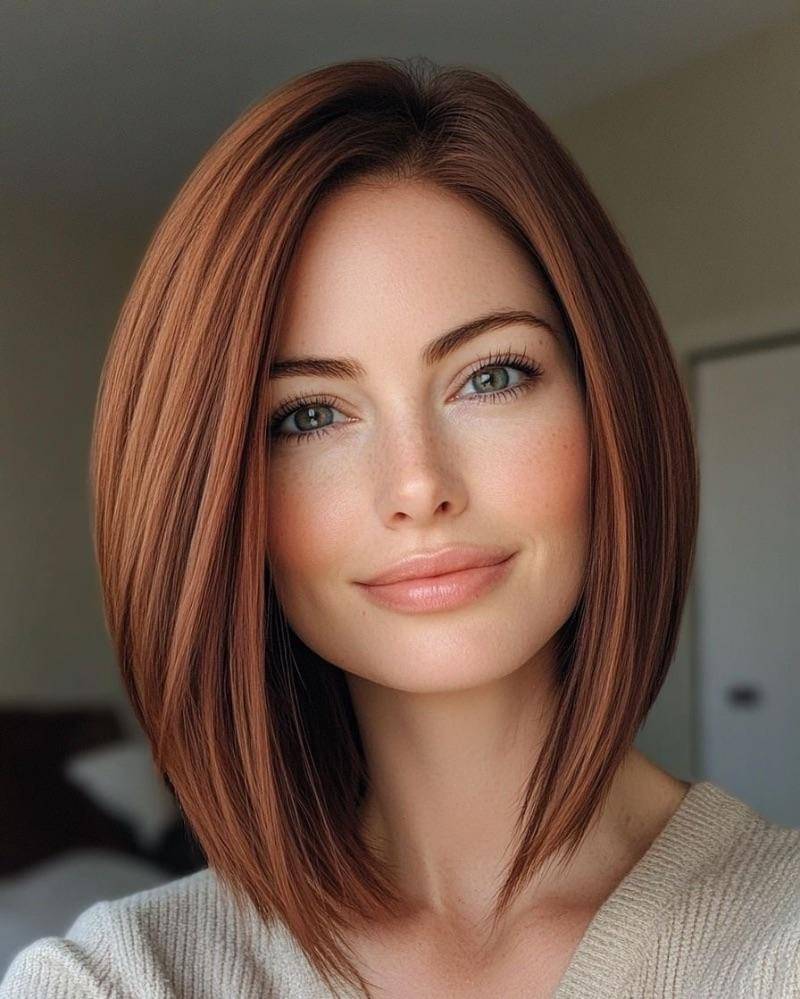 Gaya rambut bob lurus dengan ujung rata memberikan kesan clean, elegan, dan cocok untuk Mama yang menyukai tampilan simpel tapi tetap memukau.