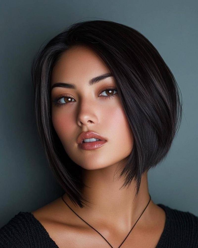 Ingin mencoba sesuatu yang lebih unik dan modern? Bob miring adalah jawabannya. Gaya ini punya potongan asimetris dengan sisi kanan dan kiri yang berbeda panjangnya, memberikan tampilan edgy yang menarik.