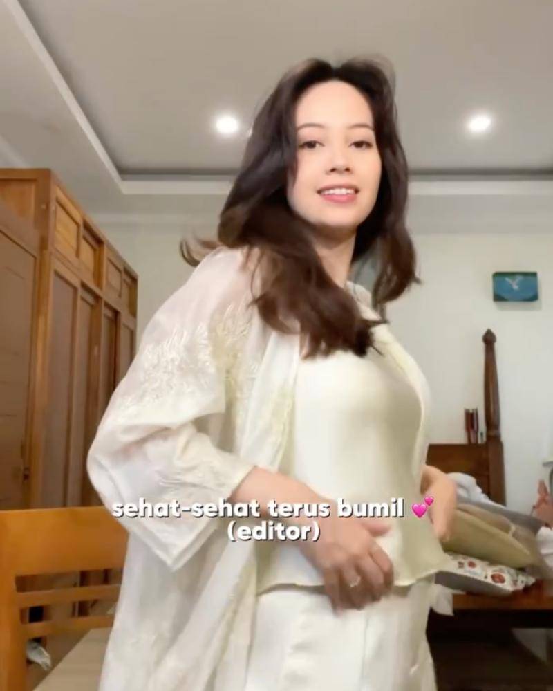 Gaya sederhana yang dikenakannya pun semakin menambah aura keibuan yang hangat. Anggika terlihat santai namun tetap elegan dalam setiap detail persiapannya.