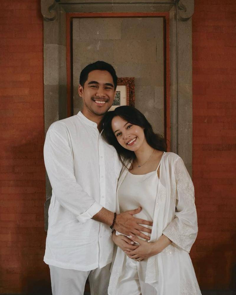 Anggika terlihat menawan dalam pakaian simpel namun tetap elegan, yang semakin menambah pesona keibuannya. Sambil tersenyum bahagia dan memegang perut Anggika, mereka menunjukkan kekompakannya dalam menyambut sang calon buah hati.
