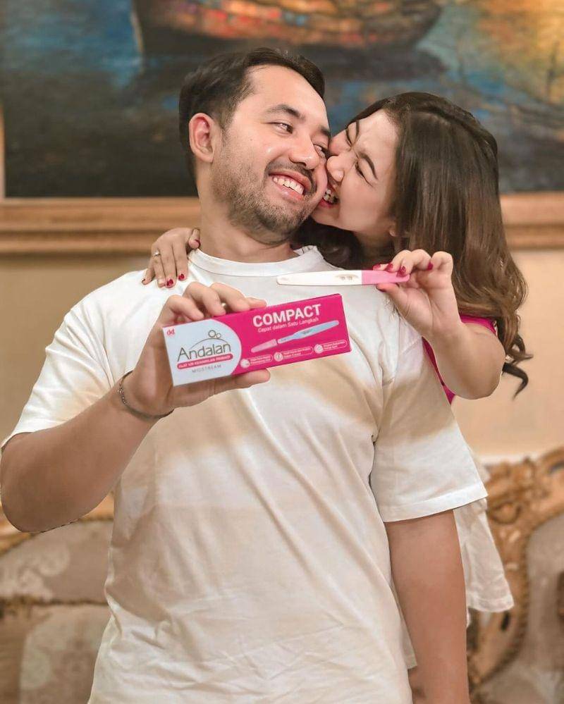 Saking bahagianya mendapatkan garis dua, Kiky mengabadikan momen bahagia ini dengan foto menunjukkan hasil test pack dan mengunggahnya di Instagram. Dari foto tersebut, raut kebahagiaan begitu terpancar dari wajah Kiky dan Khairi.