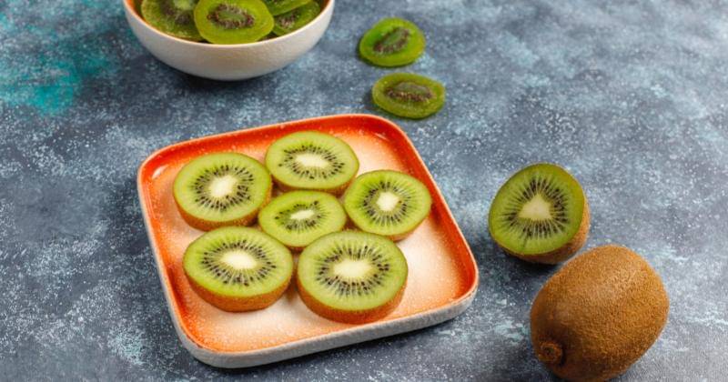 Selain mengandung vitamin K, kiwi juga sumber probiotik yang baik untuk mencegah sembelit, diare, maag, mual, muntah, nyeri perut, dan morning sickness saat hamil.