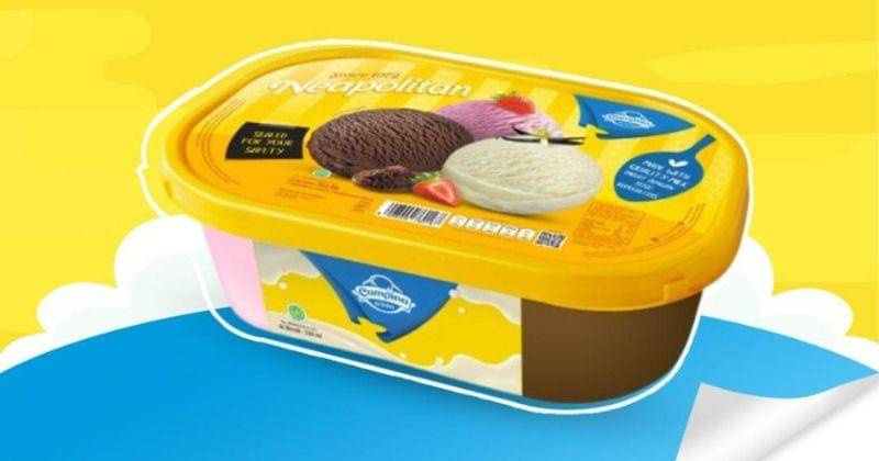 Campina Neapolitan bisa Mama dapatkan di minimarket dengan kisaran harga Rp 24.000 dalam ukuran 350 ml.