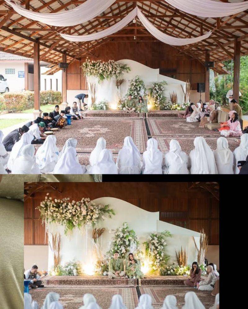 Tasyakuran ini diselenggarakan dengan konsep yang sederhana namun tetap terasa hangat. Nuansa hijau kalem menjadi warna dominan, memberikan suasana adem sekaligus menenangkan.