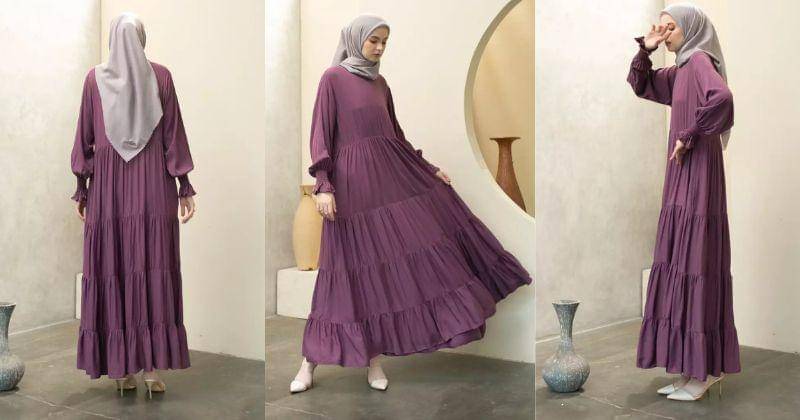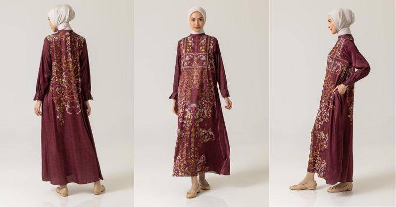 Warna burgundy atau merah tua seperti anggur diprediksi akan menjadi tren baju Lebaran 2025 nanti. Nah, Mama bisa mempertimbangkan busana dengan nuansa burgundy yang memberikan kesan mewah serta menawan saat dikenakan.
