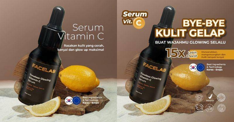 Facelab Timeless Glowing Vitamin C Serum merupakan serum wajah yang mengandung 15% vitamin C murni. Kandungan ini diklaim dapat mencerahkan kulit dengan cepat.