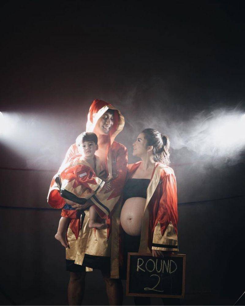 Keluarga kecil ini foto maternity bersama anak pertamanya, Lori. Putri dan Junior memilih tema olahraga tinju. Meski temanya olahraga, keluarga ini gemas banget!