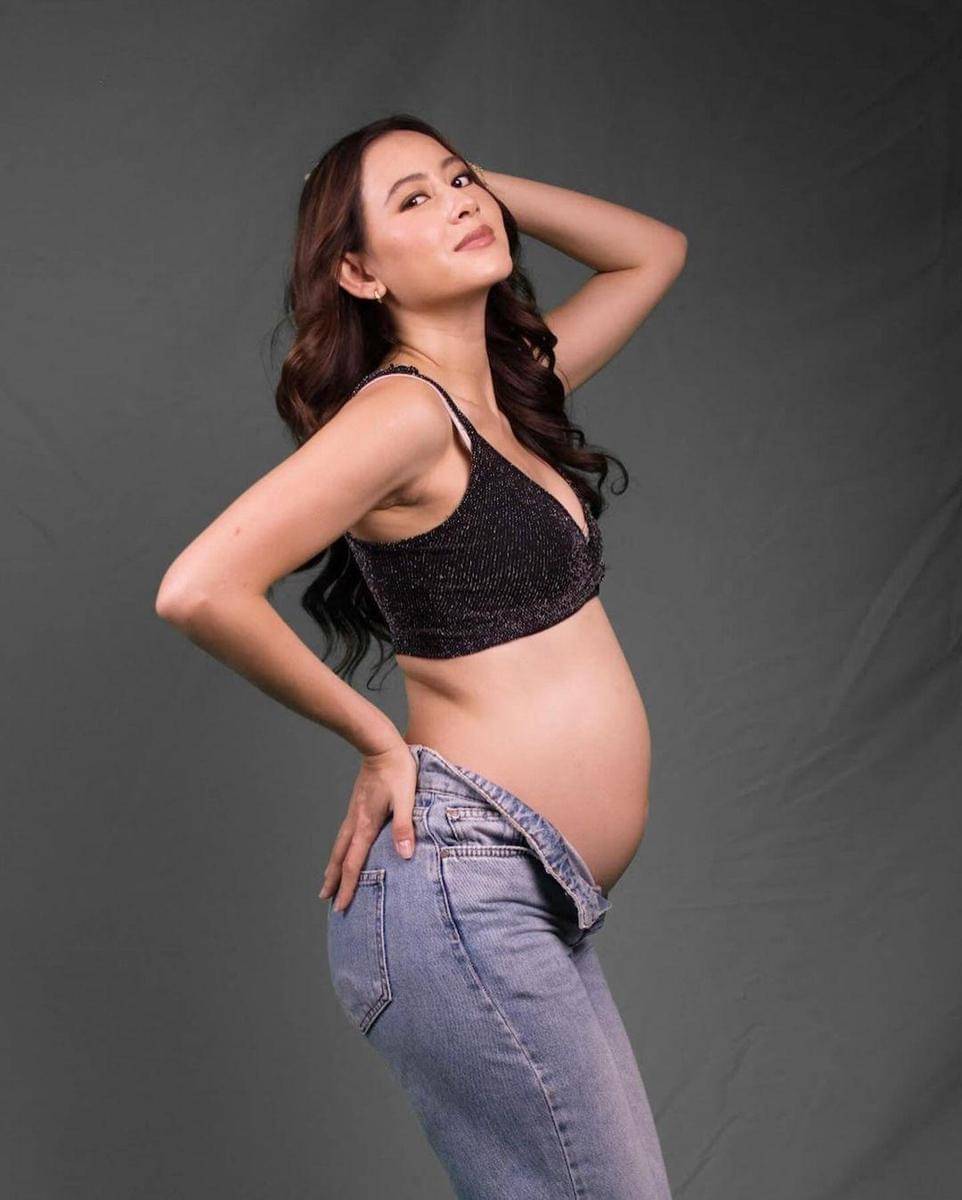 2. Memamerkan baby bump yang semakin besar