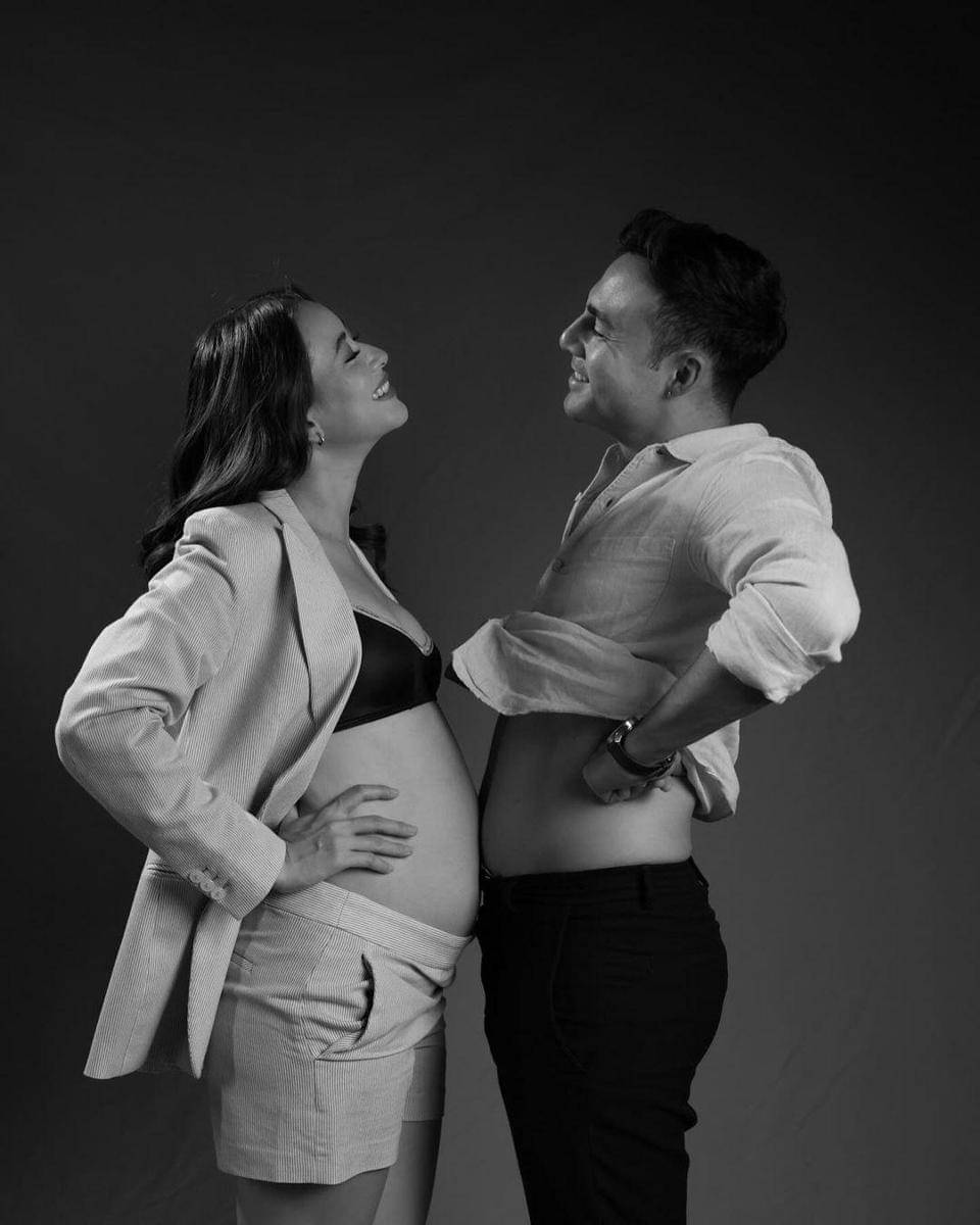 Dalam foto ini, Indra Brotolaras menempelkan perutnya dengan perut sang istri seolah sedang adu baby bump. Duh, sweet banget, ya, Ma pasangan ini!