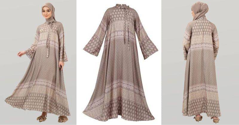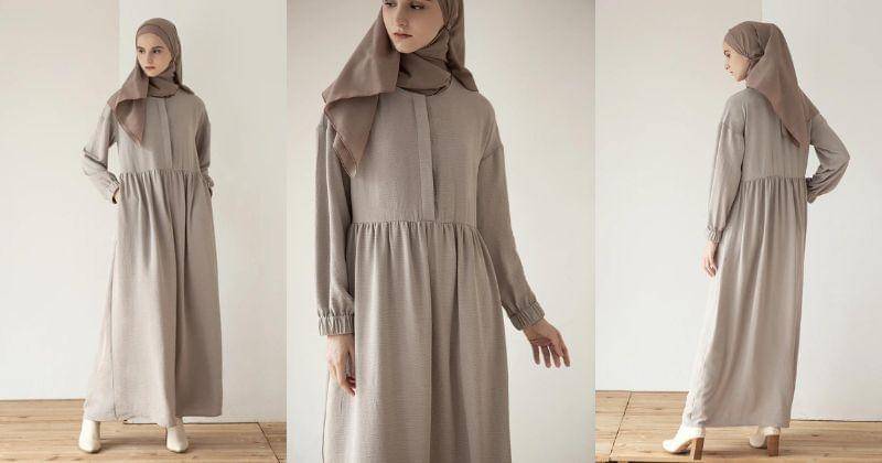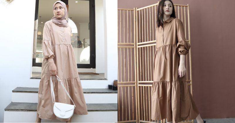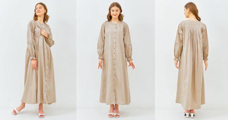 Sand Kalila Dress dari Aska Label ini memiliki desain simpel dan warna earth tone yang elegan. Gamis ini juga bisa dikenakan ibu hamil dan memiliki bukaan untuk menyusui.